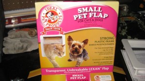 Below I show how I built my work of art. I simply used small pet door and a duct which can be purchased at any local hardware store.