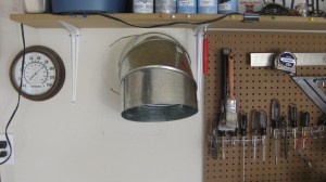 This is the duct from the inside of the garage. The diapers fall out of this chute into a waiting trashcan placed underneath. I will line the trashcan with charcoal to absorb the odors. I will simply step out of the car, take out the trash, and Voila! It’s a nice way to dispose of dirty diapers in a convenient centralized location!