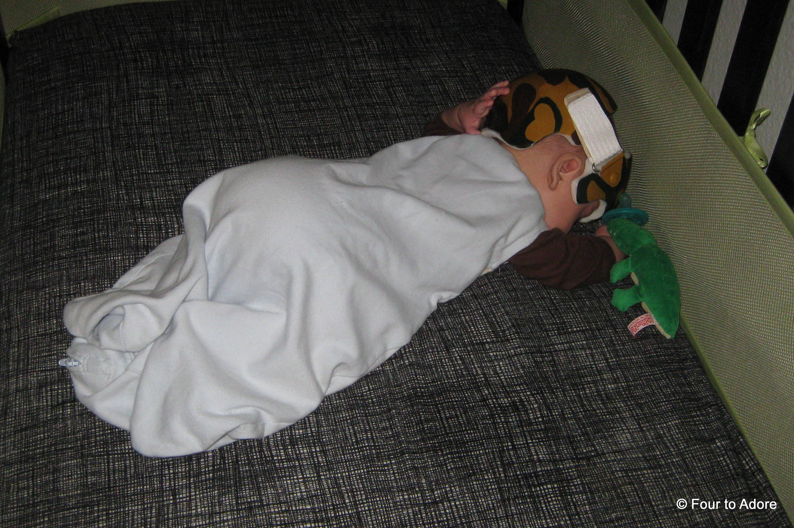 Since he couldn’t seem to sleep all day we were slightly concerned about making it through the night with Mason’s new accessory.  George and I braced ourselves for a rough night, but Mason slept like an angel!  I think he was utterly exhausted and finally figured out that he could sleep in the DOC Band after all.  Harper on the other hand woke up wailing at 10:00 pm for no apparent reason.  Thankfully, we were able to settle him and all babies slept through the night as usual.