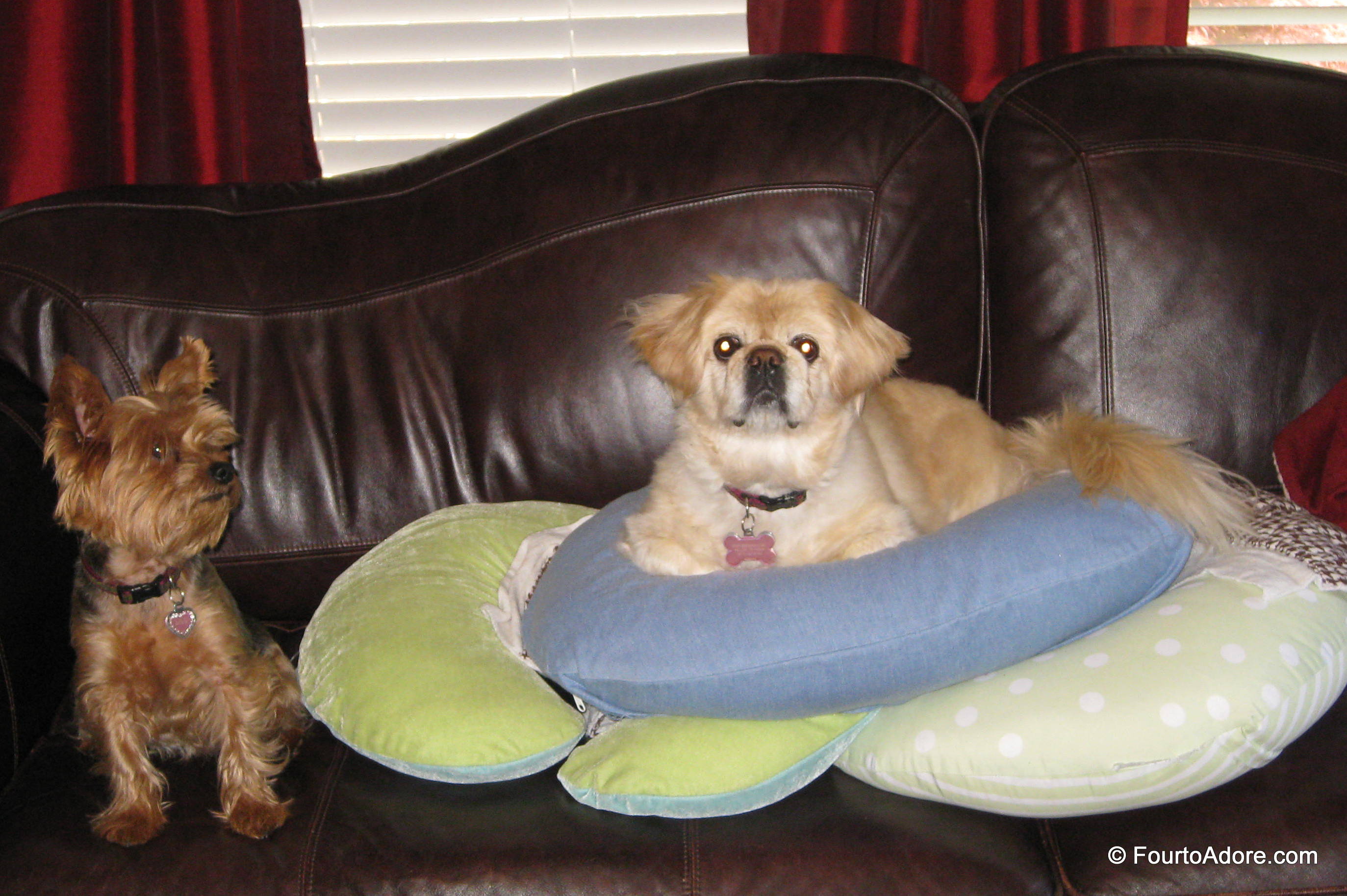 I put the Boppy pillows on the couch to vacuum and this is what happened next. On the brighttside, Sasha got the gumption to jump up there and be in the den with her family.