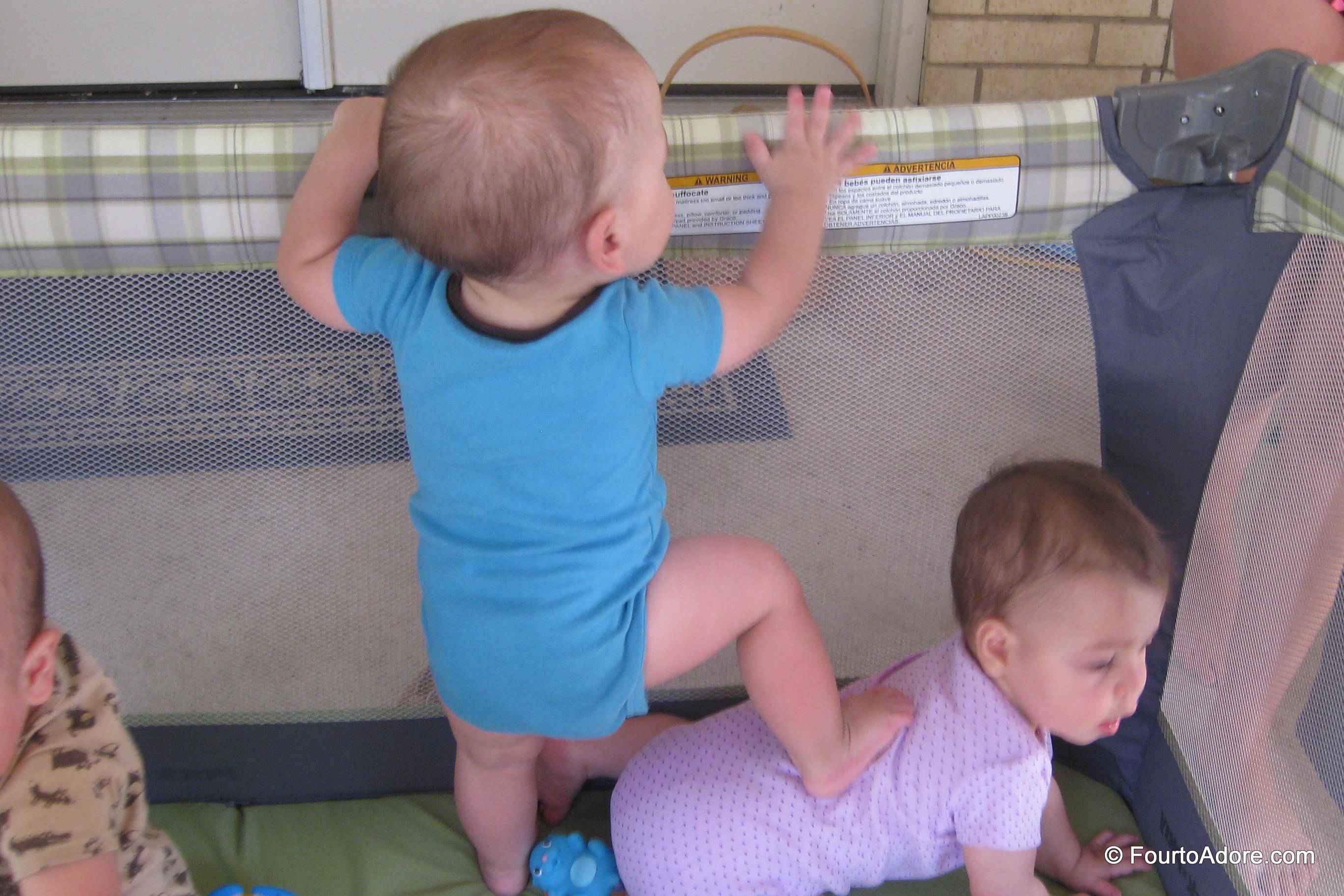 The Pack ‘n’ Play worked well as a baby holding tank that prevented anyone from heading towards the water unsupervised. Mason never ceases to amaze me. He used poor little Sydney to boost him up.