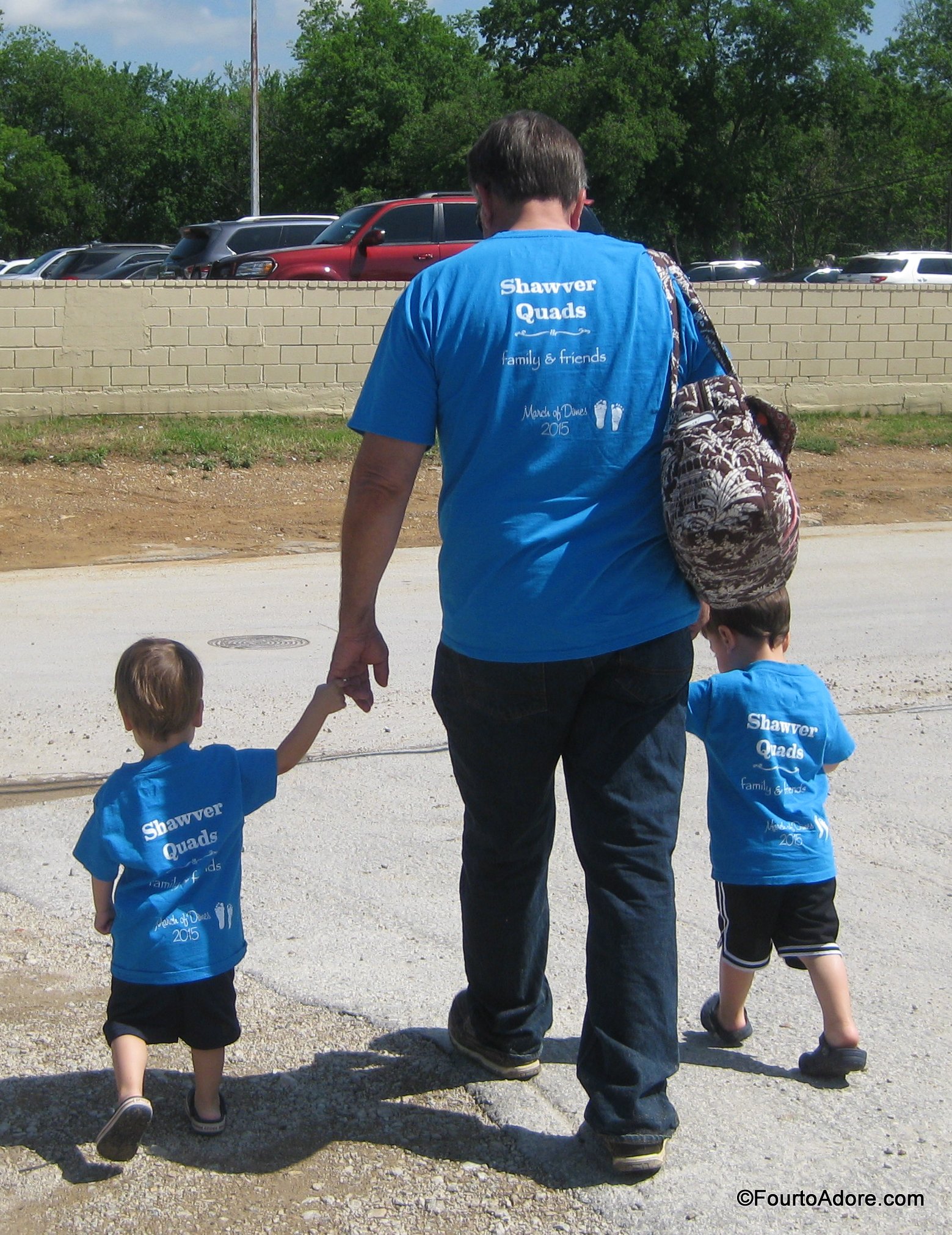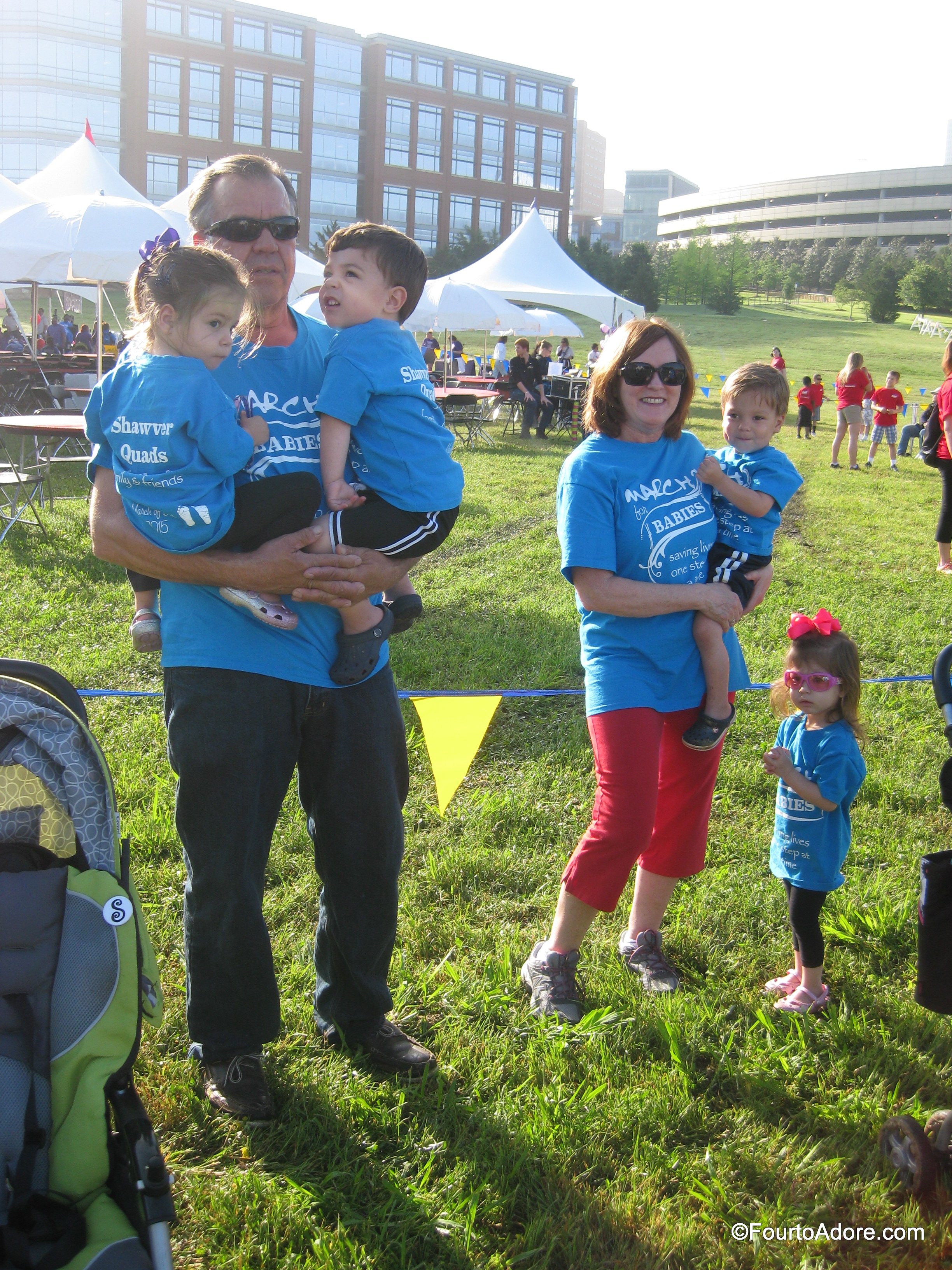 The front of our shirts read, “March for Babies. Saving lives one step at a time.” The back read, “Shawver Quads Family & Friends. March of Dimes 2015.”