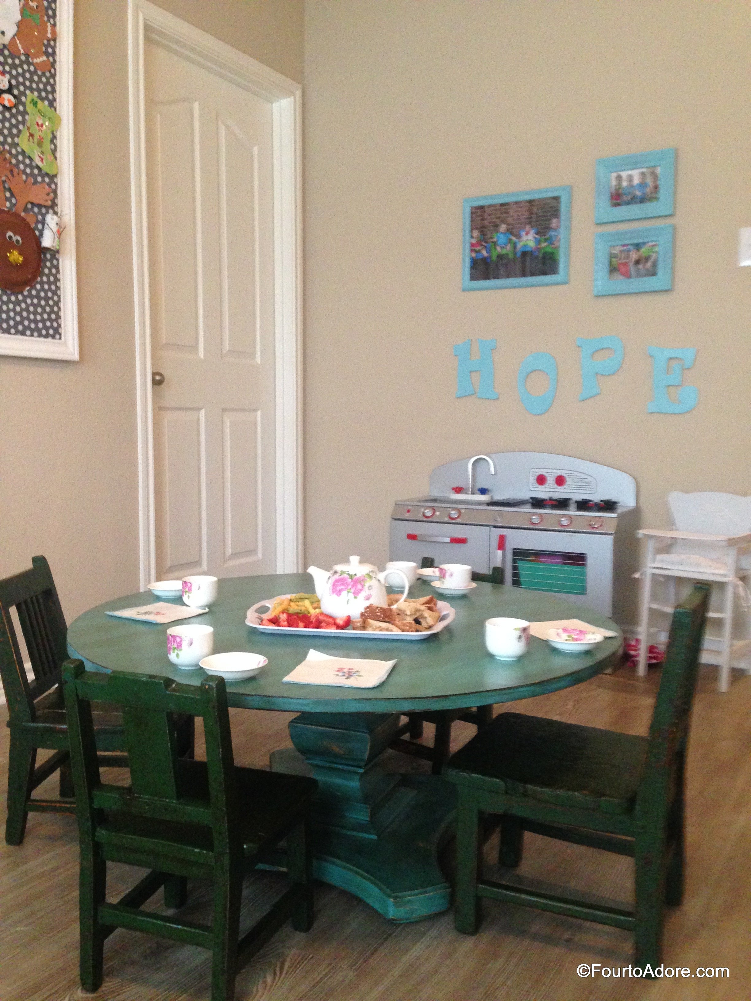 3. Tea Party- We hosted several tea parties when the quads had a cold this winter and it’s always a nice distraction. It’s also the opportune time to practice table manners and drinking from open cups.